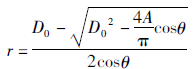 確定閥門(mén)流量系數(shù)CV值后按式(3)計(jì)算出A0,然后根據(jù)式(4)針對(duì)閥瓣某一閥瓣開(kāi)度h%時(shí)計(jì)算出調(diào)節(jié)閥的閥瓣型面所形成的等效節(jié)流流路的面積A。按照?qǐng)D1所示閥座密封點(diǎn)處畫(huà)出一條射線段使其與水平夾角為θ,長(zhǎng)度為r。假設(shè)此點(diǎn)剛好為此閥瓣開(kāi)度h%時(shí)閥瓣型面上的點(diǎn),即此射線段所形成的圓臺(tái)側(cè)面積與A值一樣,即有
