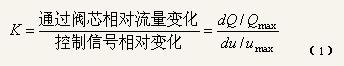 K1表示閥行程與到閥控制信號之間的關系,K2表示通過調節閥的物料流量與閥行程之間的關系,即調節閥的結構特性(又稱固有流量特性),一旦閥已選定它就不能再改變了。調節閥的結構特性,即